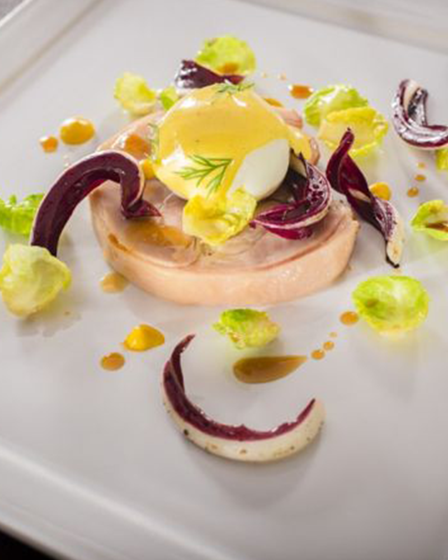 GastronomieIn Molke marinierte Schulter vom Jungschwein, Radicchio, Rosenkohl und pochierte EierGianluca OrtuFleisch