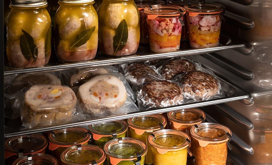 Dank der ständigen Kontrolle von Temperatur, Luftfeuchtigkeit und Belüftung schaffen die IRINOX-Lagerschränke ein optimales Umfeld für die Lagerung sowohl von erstklassigen Fleischstücken als auch von aufwendigeren Produkten wie Tartar, Hamburgern und fertig panierte Speisen. Panierte Speisen sind besonders empfindlich und neigen dazu, viel Feuchtigkeit aufzunehmen, wodurch sie ihre Panade verlieren. Mit unseren Lagerschränken wird dieses Risiko verhindert: Die Panade bleibt intakt und besonders knusprig. Darüber hinaus verhindert unser Sanigen®-Desinfektionssystem die Bildung von Schimmelpilzen und Bakterien und gewährleistet so die Unversehrtheit der Lebensmittel.