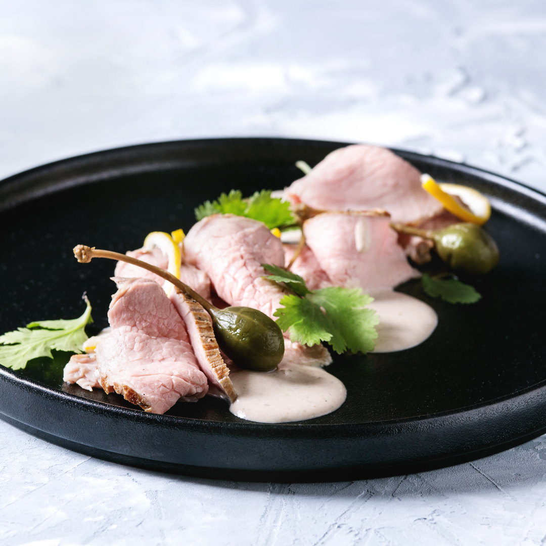 Carrillera de ternera a baja temperatura y puré de apionabo