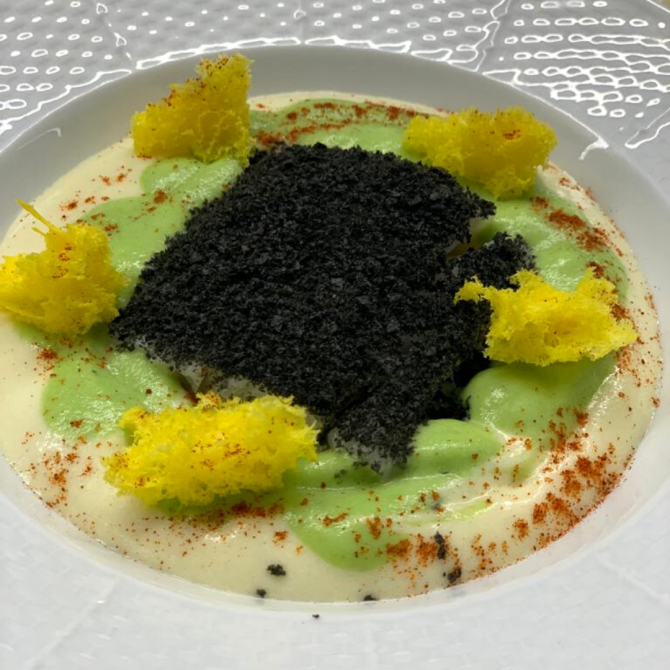 RistorazioneSpuma di patate affumicate, baccalà panato al nero di seppia e spuma di broccoliAlessio GranzottoPesce