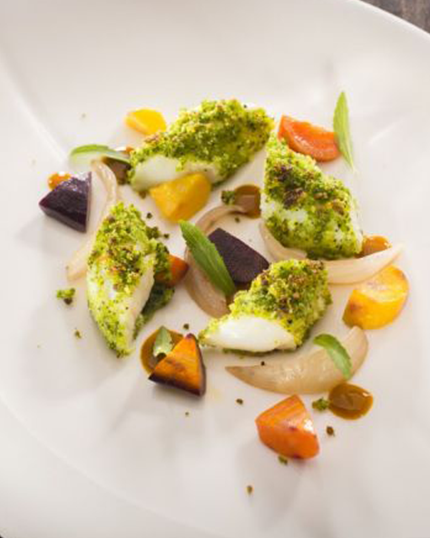 - Servite le codine di rana pescatrice, accompagnandole con caponata di carote, cipolla Napoli cotta al forno ed erba cedrina