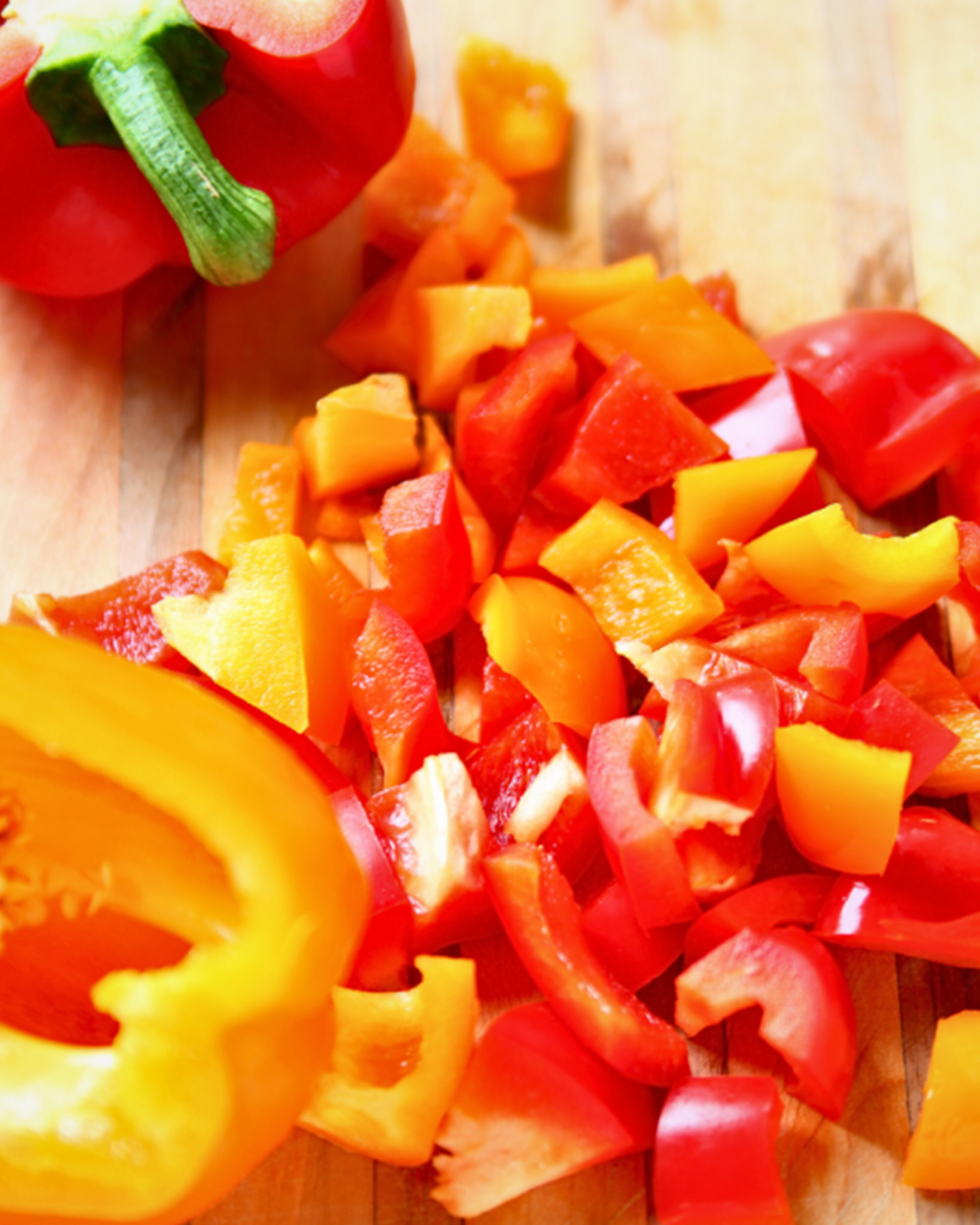 - In una pentola portare a bollore l’aceto, l’olio, il sale e zucchero. Aggiungere i peperoni e farli cuocere mescolando spesso per alcuni minuti (devono rimanere molto croccanti)