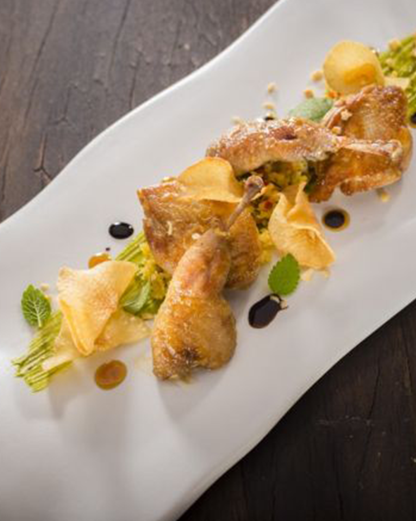 - Rosolateli successivamente in padella con aglio e rosmarino. Servite le coscette ed i petti di quaglia accompagnati con salsa verde e cous cous di verdure stagionali