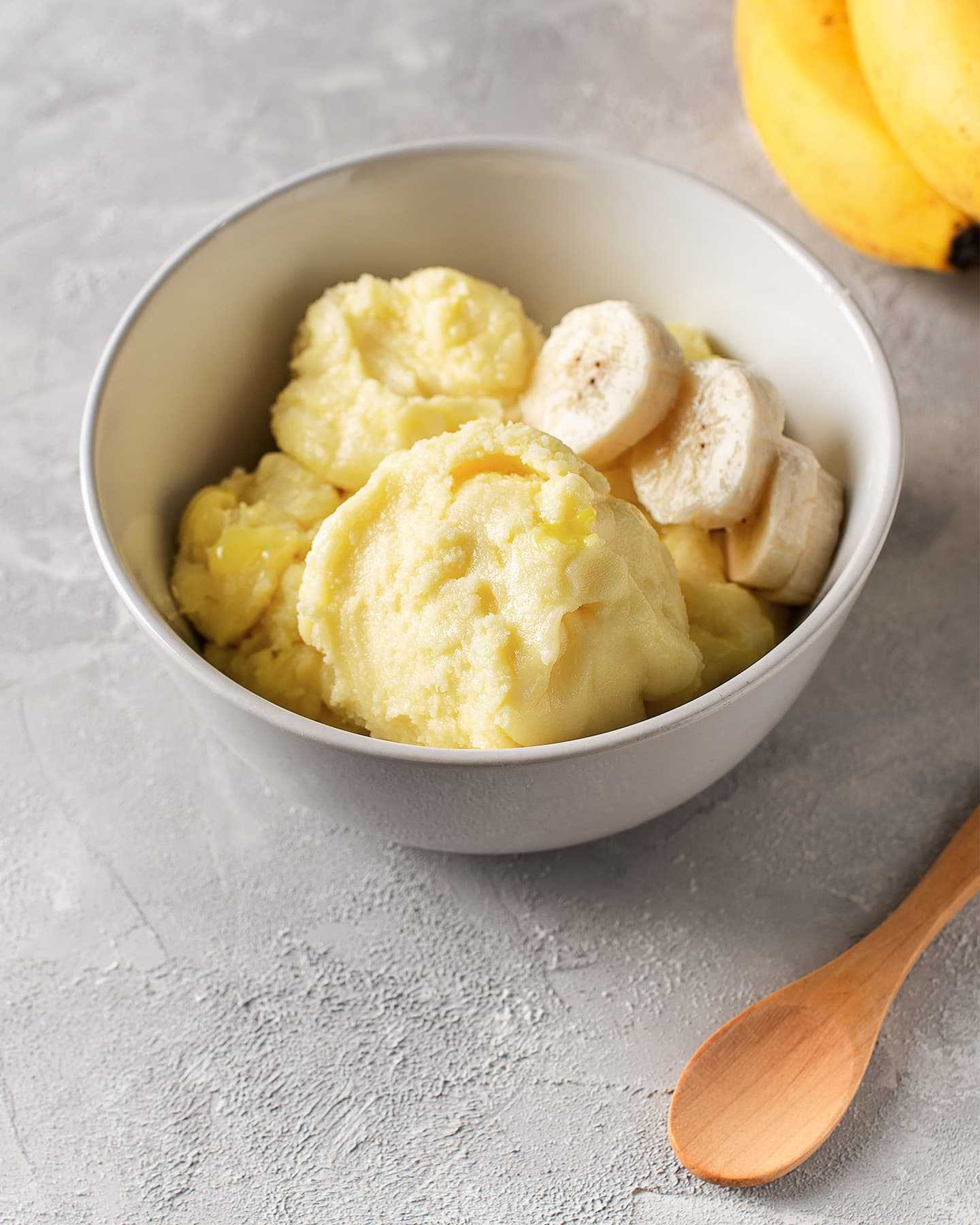 - Unire le banane ben fredde ed emulsionare nuovamente. Mantecare. Alla fine abbattere il gelato con l'apposito ciclo personalizzato.